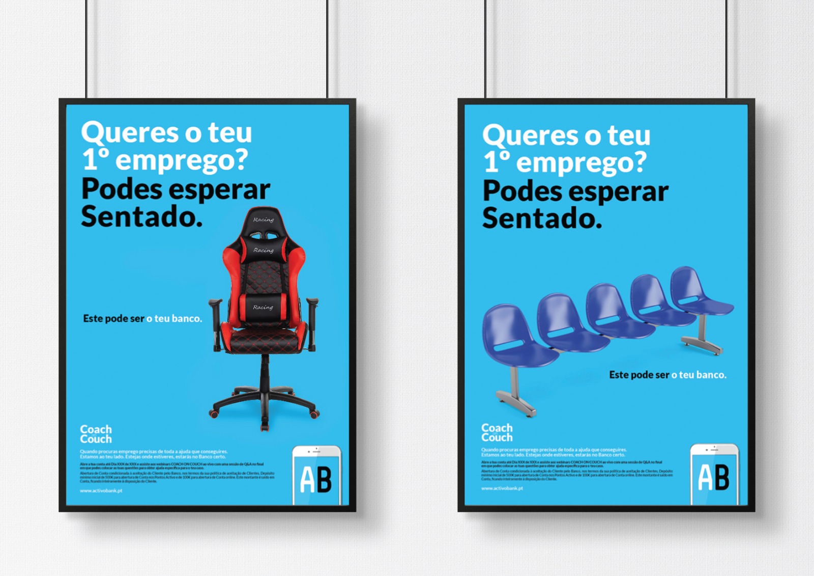 O Conceito passa por “Estás à procura do teu 1º emprego? Podes esperar sentado, e este pode ser o teu banco”